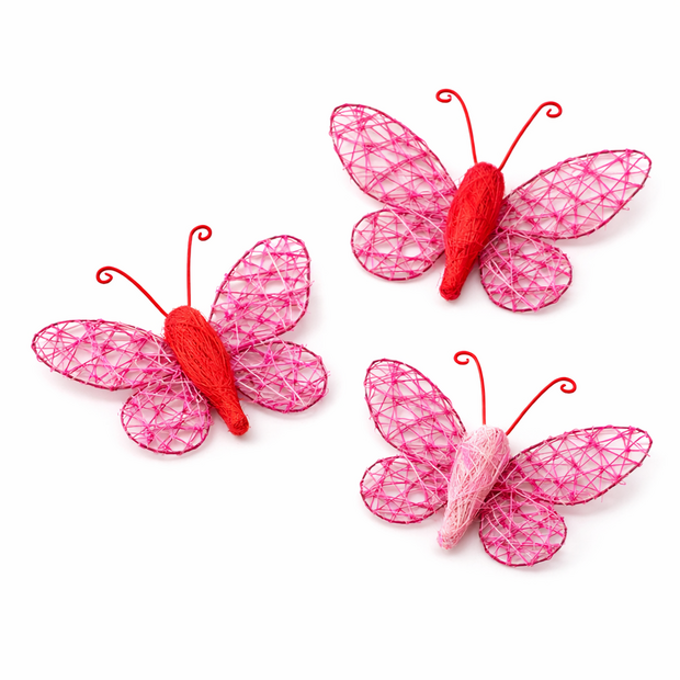 Decorative Sisal & Twig Butterfly 15cm - Pink - Pack of 3