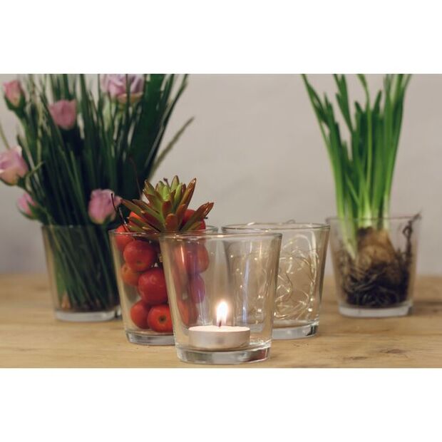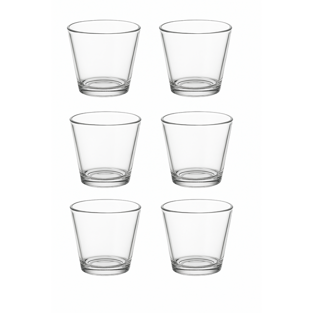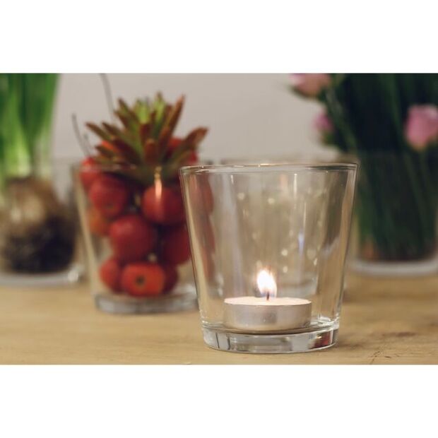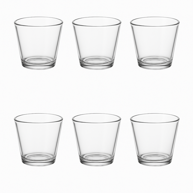 Elegant Design: The simple yet sophisticated clear glass votive holders beautifully enhance the glow of candlelight, complementing any decor style.High-Quality Glass: Crafted from durable, high-quality glass, these votive holders ensure long-lasting use and a premium look.Set of 6: Includes six matching votive holders, perfect for creating a coordinated and harmonious display.Versatile Use: Ideal for home decor, weddings, parties, events, and more. Perfect for adding ambiance to dining tables, mantels, and windowsills.Perfect Gift: Makes a thoughtful and elegant gift for housewarmings, weddings, or any special occasion.Easy to Clean: The simple design allows for easy cleaning and maintenance, ensuring your votive holders stay beautiful over time.Compact Size: Each votive holder measures 2.5 inches in height and 2 inches in diameter, perfectly sized for standard votive candles or tea lights.Dimensions: Height: 7.5cm; Top diameter: 7.5cm; Bottom diameter: 5.5cm