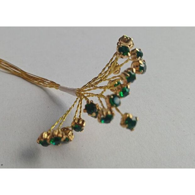 Add a touch of elegance and sparkle to your floral arrangements or craft projects with the Diamante Spray in Emerald. This exquisite spray features stunning emerald diamantes on flexible gold wire, designed to elevate your creations with a brilliant, shimmering effect. The spray comes with 6 bunches, each containing 6 stems, and each stem is adorned with 3 dazzling diamantes. Perfect for art, decoration, or embellishing wedding flowers, home décor, and more, these sprays offer a chic way to decorate with style and sophistication.