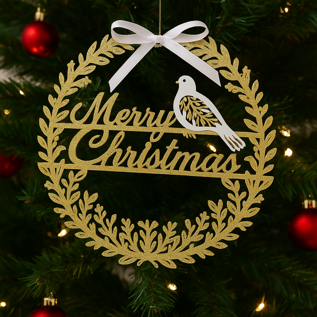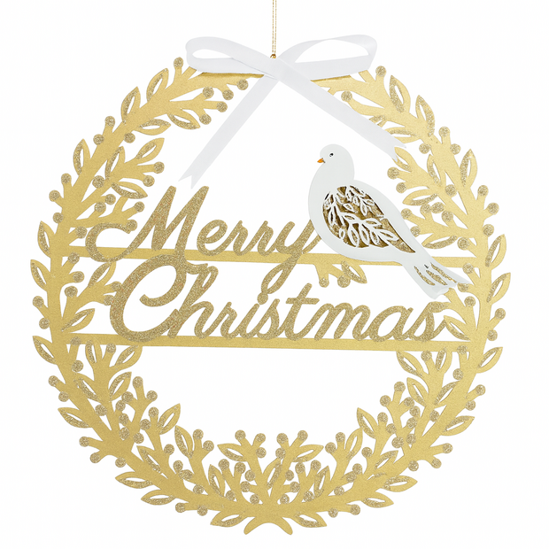Dove & Wreath Merry Christmas Wall Hanger