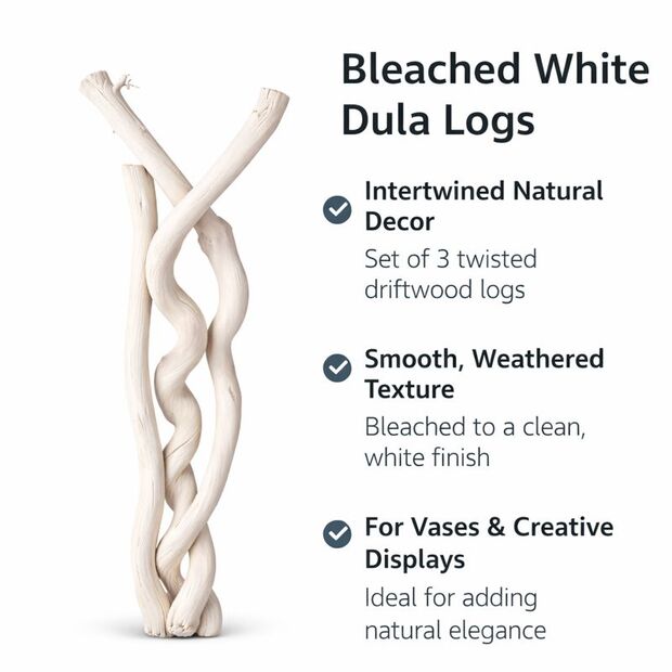 Elegant Natural Decor: Add sophistication to any space with these dried white Dula wood branches, perfect for home and event decor.Versatile Use: Ideal for vases, centerpieces, DIY crafts, and more, enhancing both modern and rustic aesthetics.High-Quality Material: Each branch is carefully dried and preserved, ensuring durability and long-lasting beauty.Generous Length: Measuring 90cm, these branches are suitable for both large and small arrangements.Convenient Pack: Comes in a pack of 3, providing ample material for various decorative projects.