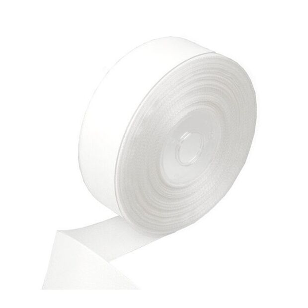 White Economy Ribbon - a matt finish polyester fabric ribbon. This general purpose ribbon holds its shape well. Ideal for corsages, bridal bouquets and gift wrapping, it is available in a wide range of fashionable colours.