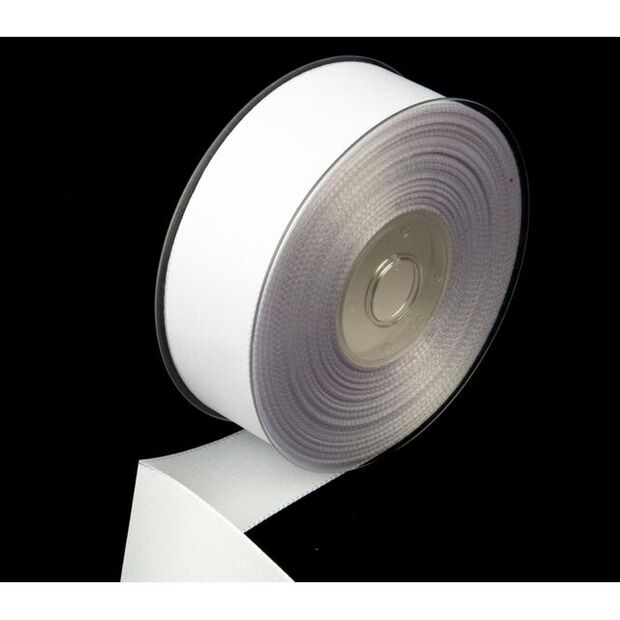 White Economy Ribbon - a matt finish polyester fabric ribbon. This general purpose ribbon holds its shape well. Ideal for corsages, bridal bouquets and gift wrapping, it is available in a wide range of fashionable colours.
