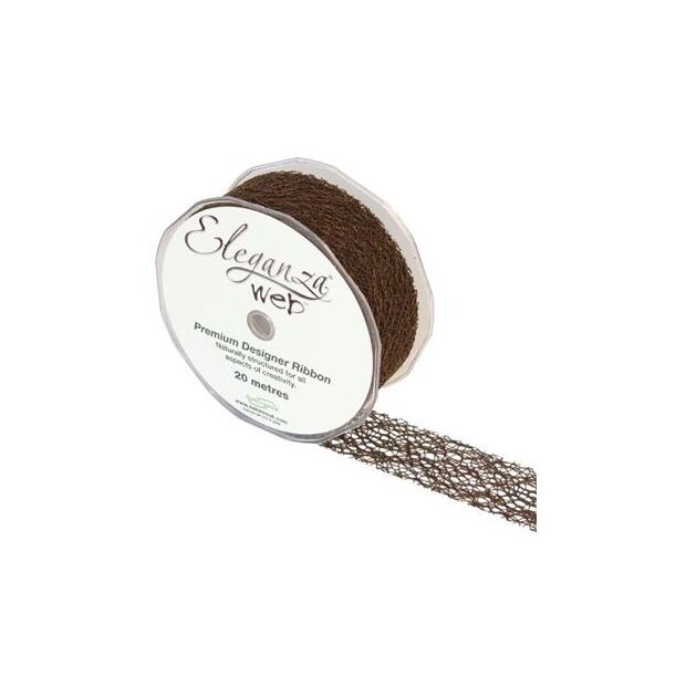 Eleganza Web Ribbon - Chocolate Brown 38mm is a premium designer ribbon that combines beauty and versatility. This naturally structured, open-weave mesh ribbon is perfect for use in any type of decor or display, adding a touch of elegance to your projects. Whether you're creating stunning floristry arrangements, enhancing gifts, or decorating events, this ribbon provides the perfect balance of texture and style. Ideal for weddings, parties, or any celebration. Elevate your decor with this exquisite and durable ribbon.