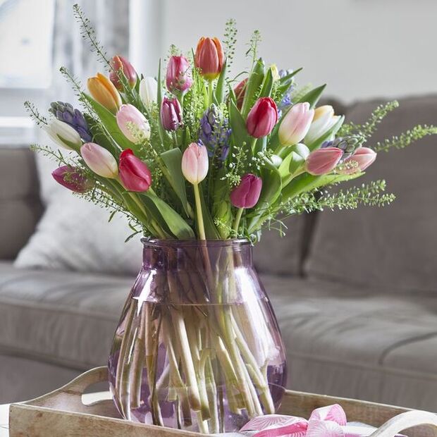 Mauve coloured glass flower vase from OASIS Floral Products, perfect for Hand-Tied bouquets. Other colours and sizes available.