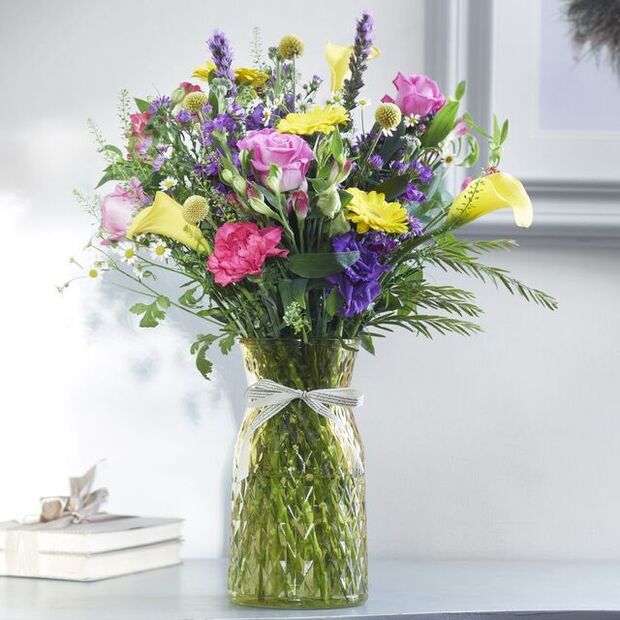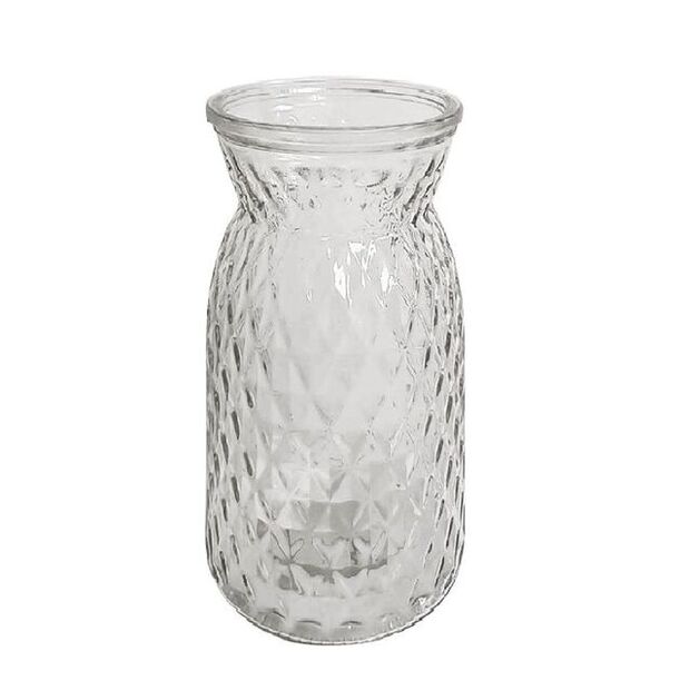 Add a touch of elegance to your home with the Oasis Emily Vase. This clear glass vase features a charming diamond-patterned texture and a delicate ribbon, making it a perfect choice for floral arrangements, bouquets, or simply as a stunning decorative piece. The versatile shape and dimpled design are ideal for showcasing neat, hand-tied bouquets, adding a refined, stylish look to any room. With dimensions of 13 x 13 x 25 cm, this vase is perfectly sized for small to medium floral displays, making it a must-have for any home décor enthusiast. Whether you're arranging fresh flowers or adding a decorative accent, the Oasis Emily Vase brings beauty and sophistication to any space.