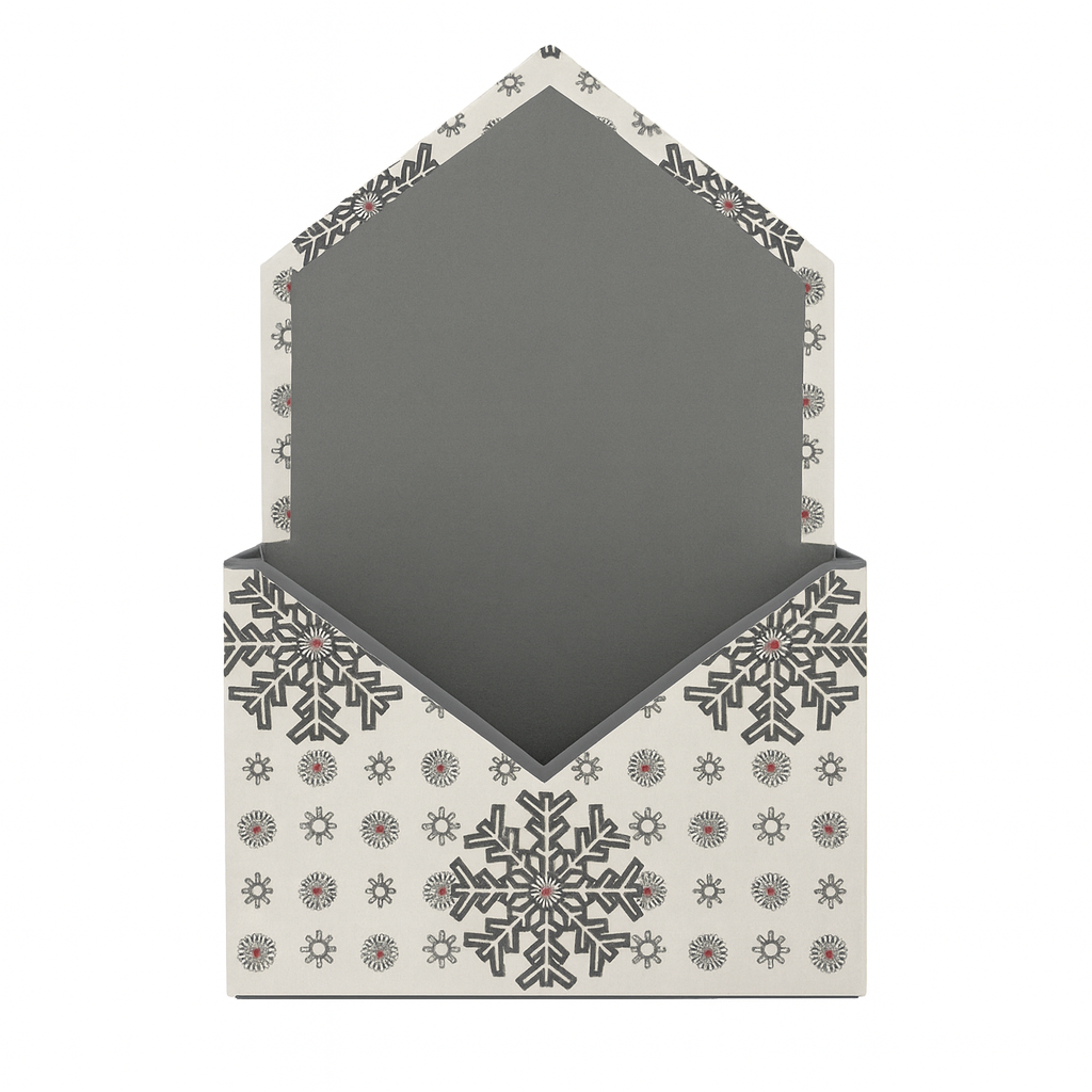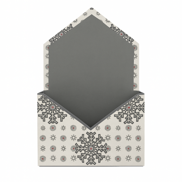Elevate your floral presentations with the exquisite Floralcraft® Envelope Box. Adorned with a grey snowflakes design against a white background, this ready-assembled box is perfect for showcasing beautiful flower arrangements, holiday gifts, or seasonal decor.