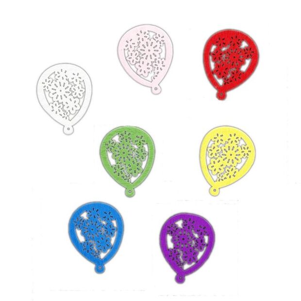 Add a whimsical touch to your crafting projects with our Filigree Balloons. This pack includes 16 small wooden balloons, featuring eight different vibrant colours with two of each, all adorned with a delicate floral design. Each balloon measures 2cm, making them perfect for a variety of creative uses. Whether you're embellishing cards, scrapbooks, or home decor, these charming balloons are a great choice for adding a pop of colour and elegance. Ideal for weddings, celebrations, or any project that needs a playful yet sophisticated detail.