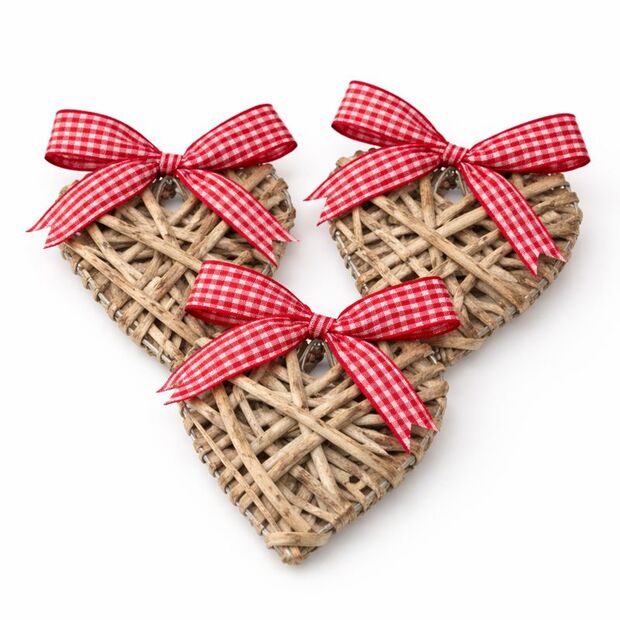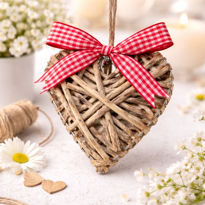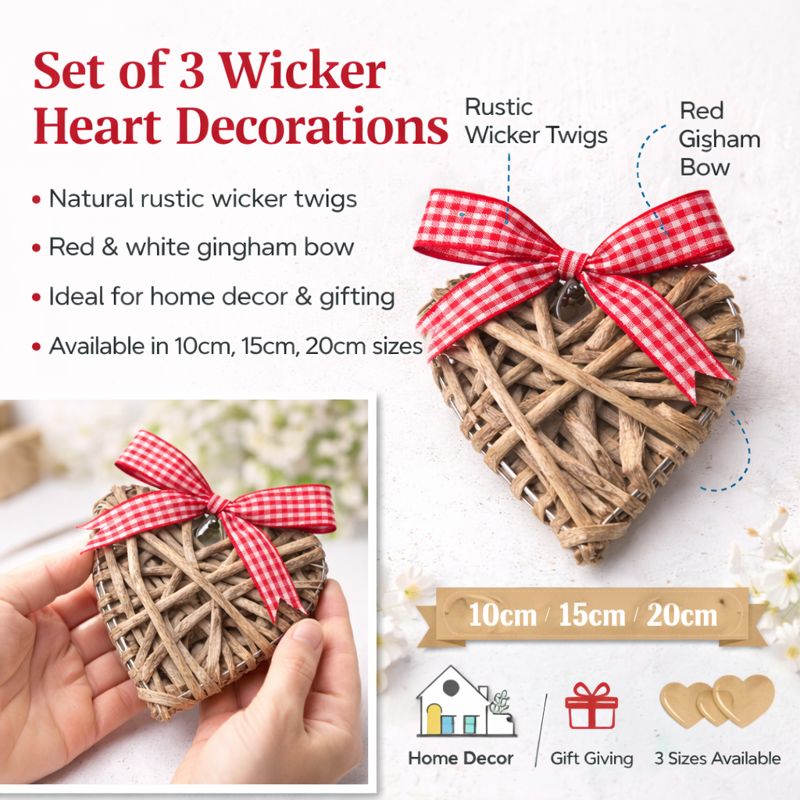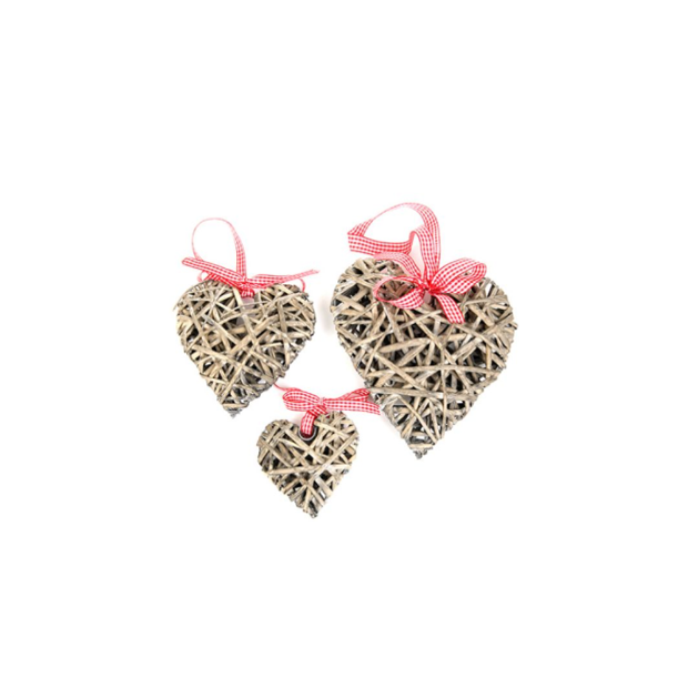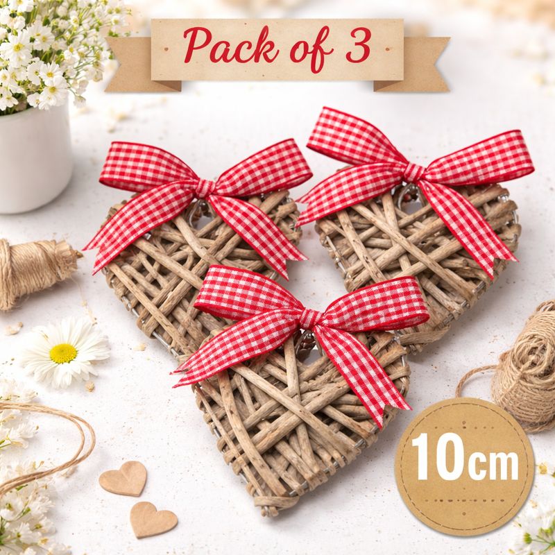 Charming and compact, this 10cm grey wicker heart adds a rustic touch to gifts, decorations, or displays. Finished with a classic gingham ribbon hanger and available in 3 sizes for a coordinated look.