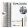 A durable 30m roll of galvanised welded steel wire mesh designed for garden fencing, allotments, poultry runs and small animal enclosures. Made from 19 gauge steel with a 25mm × 25mm square grid for improved rigidity and a neat, professional finish once installed.