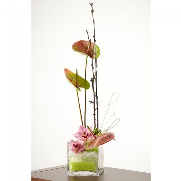 Floralcraft® 14cm glass cube vase – ideal for floristry, weddings and compact floral displays.