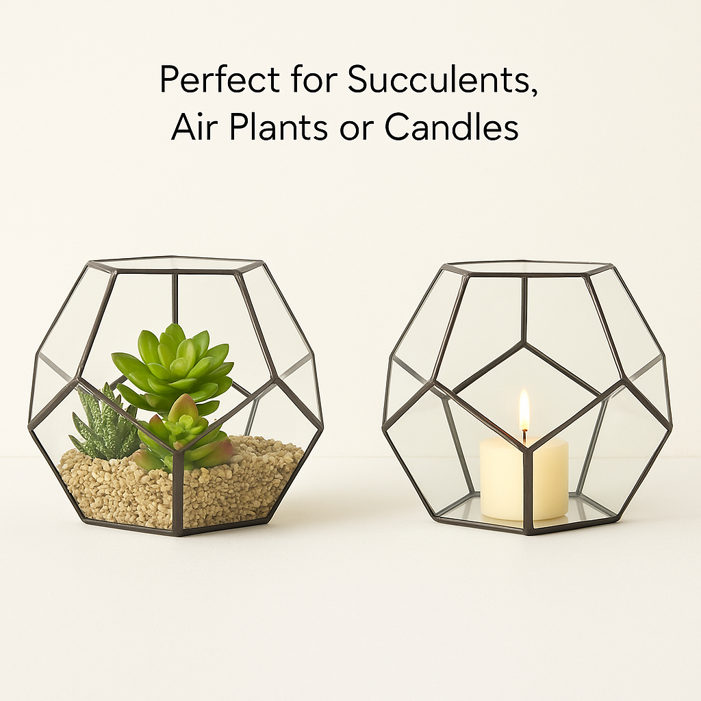 Its wide front opening makes it easy to arrange artificial flowers, succulents, moss, or even tealight candles, making it a multifunctional container for florists, event planners, and hobbyists. Whether you’re designing a wedding table centrepiece, a retail display, or a unique plant gift, this 18cm glass terrarium provides the perfect base.