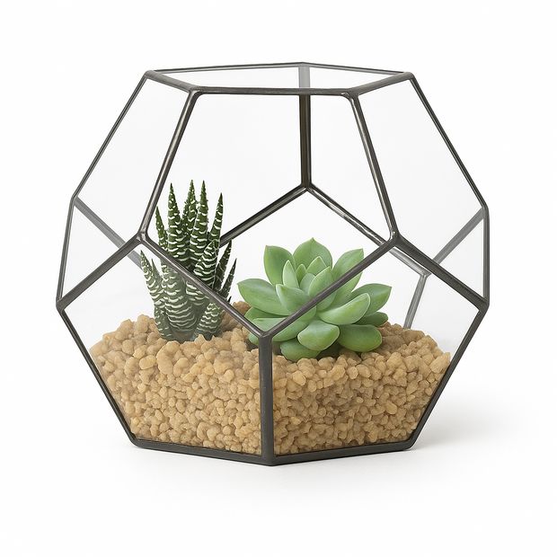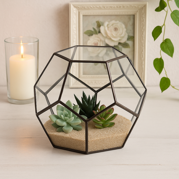 Pair this terrarium with glass fishbowl vases and other glass vases for a complete event styling collection.