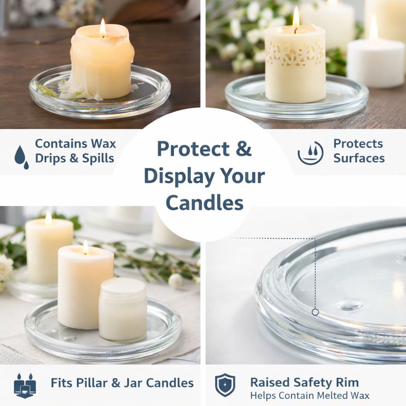 The Floralcraft® 20 cm Round Glass Candle Plate is a statement piece in candle presentation — combining form, function, and versatility. Suited for larger candles or grouped arrangements, it protects surfaces while amplifying light.