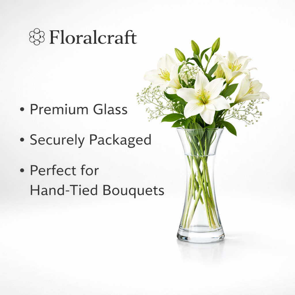 The Floralcraft® 20cm Sophia Hand Tied Vase is the perfect choice to showcase your hand-tied flower arrangements with elegance. Crafted from high-quality glass, this slender vase stands 20cm tall and features a sleek design with an 11cm diameter and a center diameter of 5cm, making it ideal for displaying a variety of bouquet sizes. Its 740g weight ensures superior stability, keeping your flowers upright and beautifully arranged. Part of the renowned Floralcraft® range, this vase is securely packaged for safe shipping and is available in two sizes to accommodate your floral needs. Whether for a special occasion or everyday decor, the Sophia Hand Tied Vase adds a touch of sophistication to any setting.