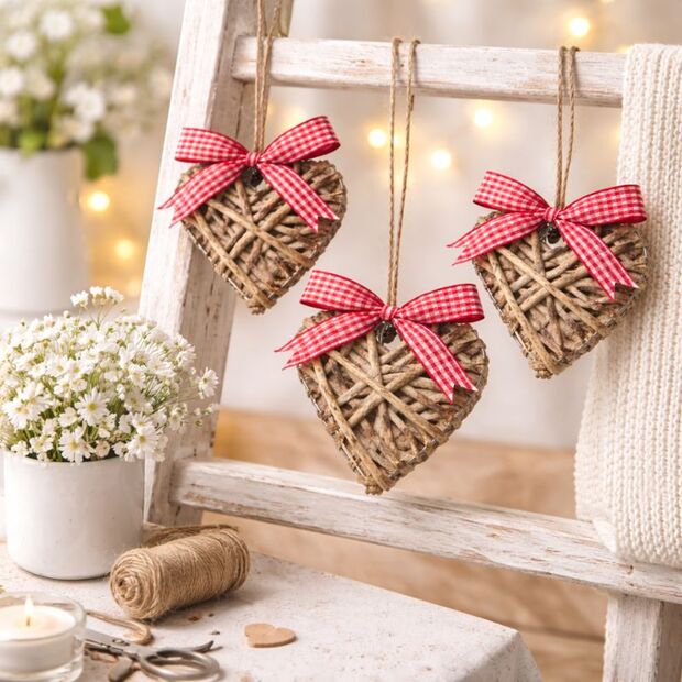 This 20cm grey wicker heart is the perfect decorative touch for weddings, gifts, or home styling. Featuring a charming gingham ribbon hanger, it’s available in three sizes to suit any setting.