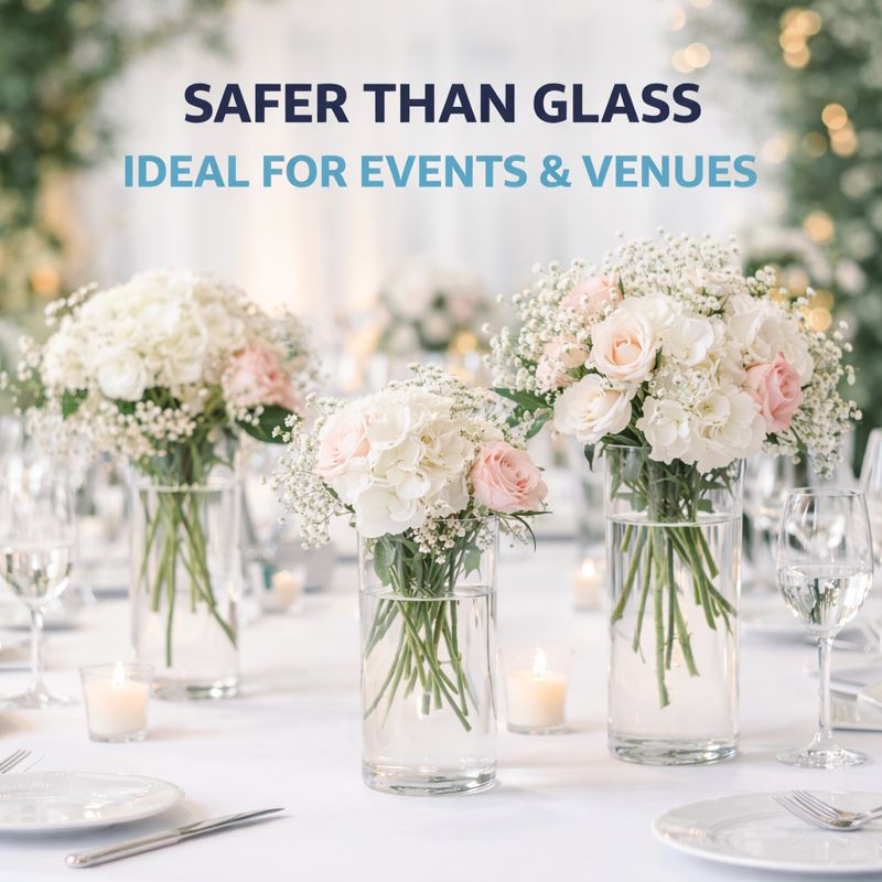 Durable 25cm clear acrylic cylinder vase — lightweight, shatter-resistant and designed for florists, weddings and event displays.