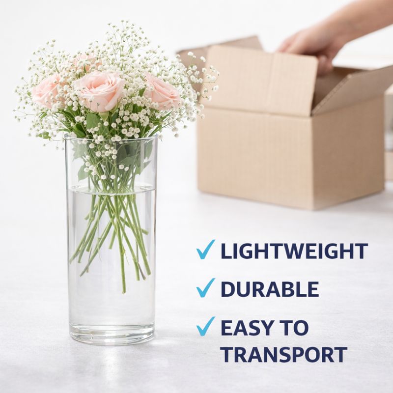 The Floralcraft® 25cm Acrylic Cylinder Vase for Florists combines the modern elegance of a tall glass cylinder with the practicality of acrylic. Its crystal-clear walls showcase stems, foliage, candles or decorative fillers beautifully while being lighter and safer than glass.