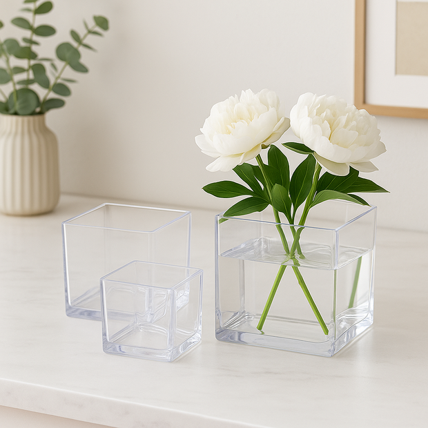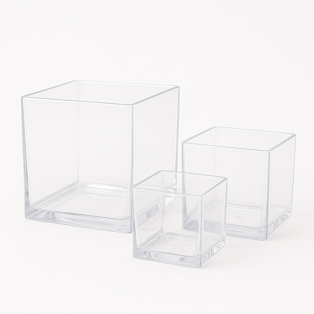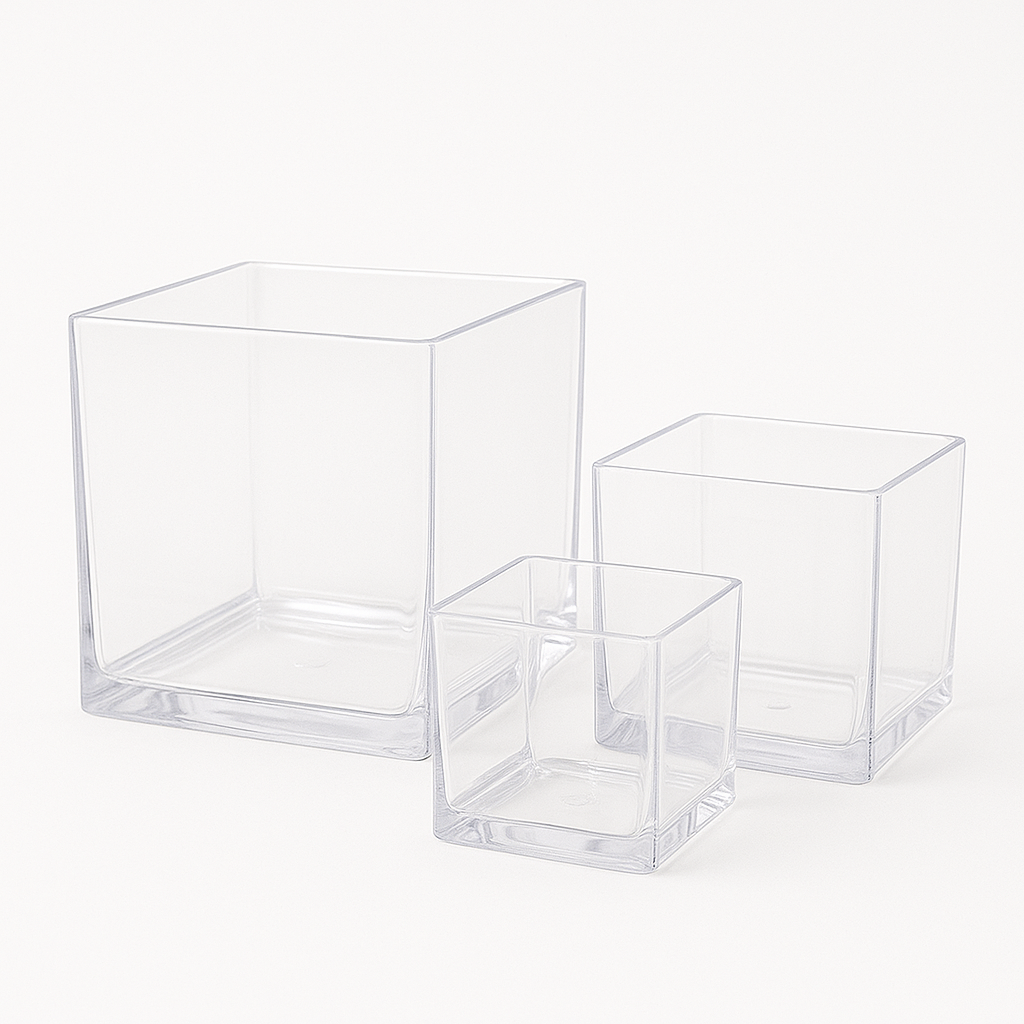 Floralcraft® Acrylic Cube Set includes three versatile display vases in 10cm, 12.5cm, and 15cm sizes. Designed with professional florists and event planners in mind, these cubes are made from high-quality acrylic, providing the clarity of glass while being lightweight and shatterproof.