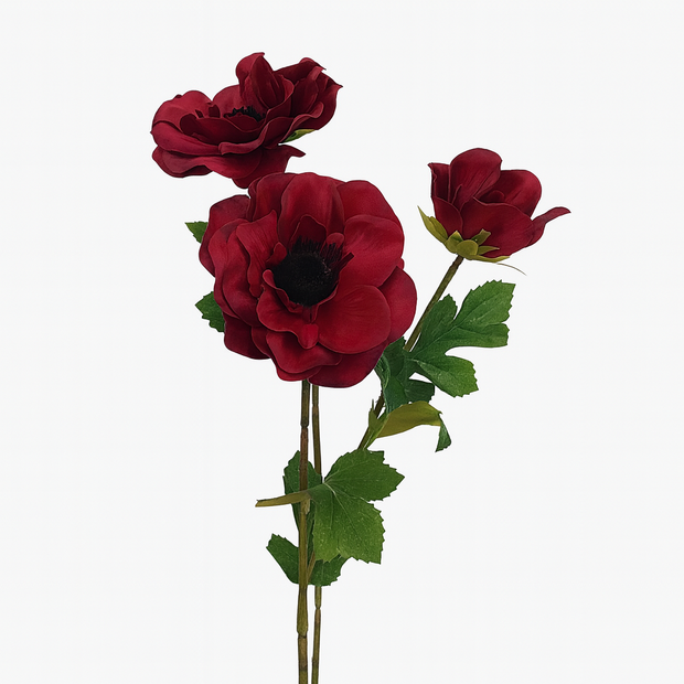 The Floralcraft® Artificial Anemone Spray in Red provides vibrant colour and lifelike texture for floral designs. With a total height of 50cm, the spray includes three fabric flower heads in natural sizes, supported by realistic leaves and a wired stem that can be shaped or trimmed as required.
