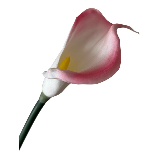 Floralcraft® Artificial Calla Lily Stem – Pink (66 cm) combines height with elegance. The tight bloom (approx. 150 mm × 80 mm) features soft pink foam-flocked petals atop a **smooth 52 cm green stem**, creating a refined silhouette with no wire needed.