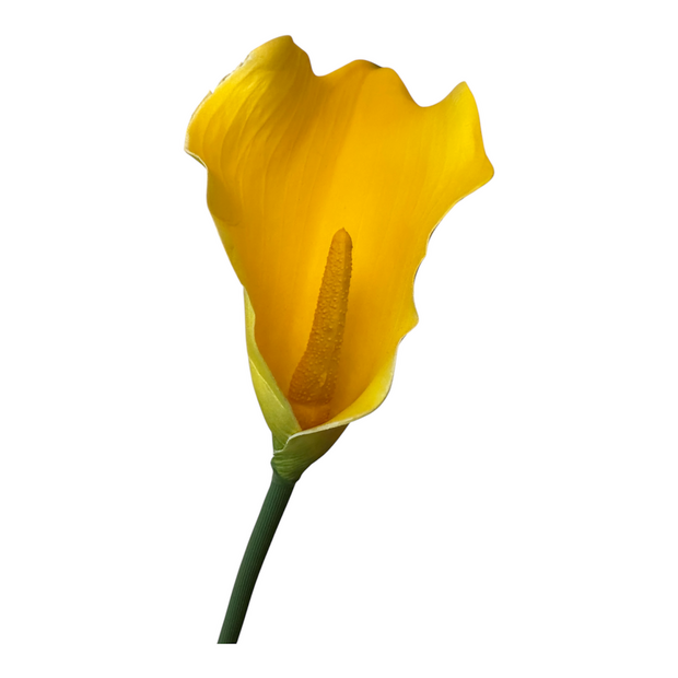 Floralcraft® Artificial Calla Lily Stem – Yellow (62 cm) brings a vibrant, sunlit tone with a foam-flocked bloom, coloured stamen and a tapered resin-filled stem that holds its shape without wire.