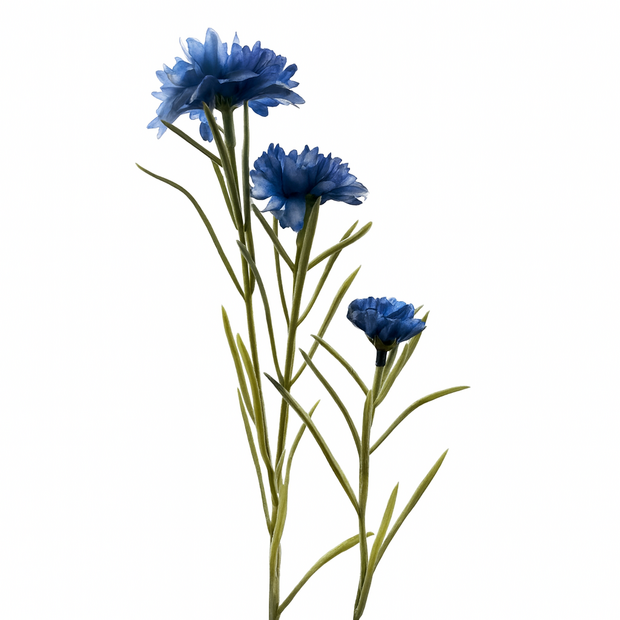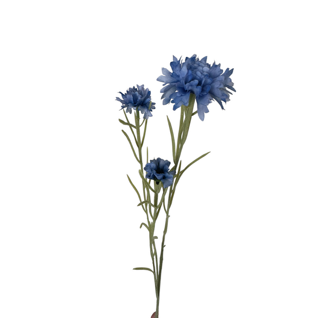 The Floralcraft Artificial Cornflower Stem in Blue captures the charm of a traditional meadow flower with a lifelike finish. At 67cm tall, the stem features three fabric flower heads in graduated sizes (approx. 5.5cm, 4.5cm and 2.5cm) with realistic shading, set on a flocked wired stem for flexible arranging.