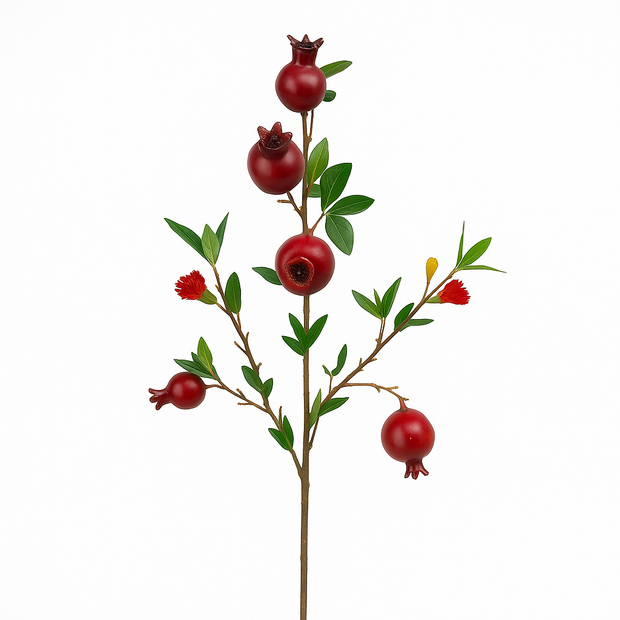Add colour, texture, and impact to your displays with the Floralcraft® Artificial Pomegranate Spray (80cm). Featuring multiple realistic pomegranates, the largest measuring approx. 5cm in diameter, along with lush green foliage and delicate red flower accents, this stem captures the vibrancy of fresh fruit without the maintenance.