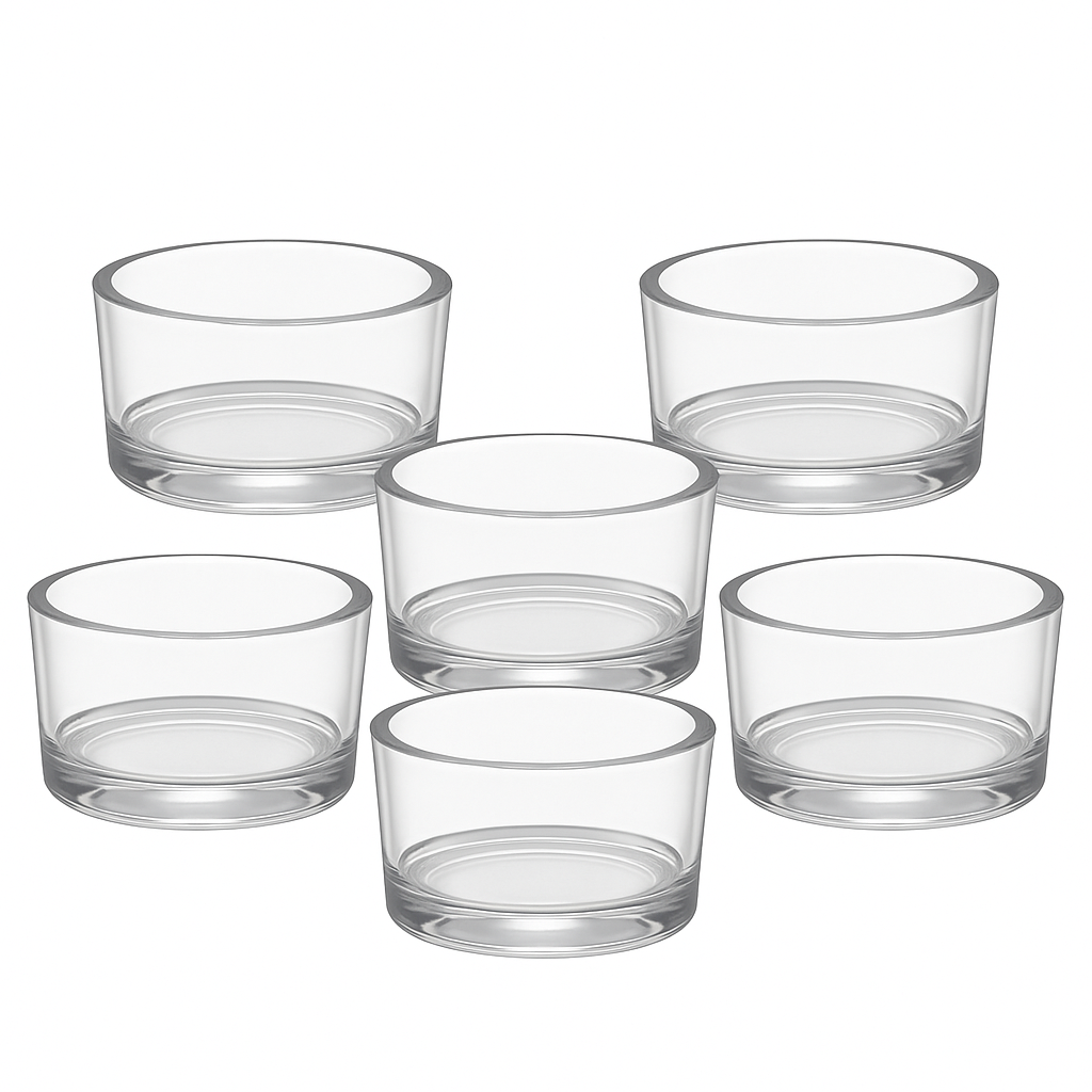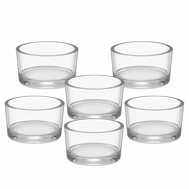 The Floralcraft® Glass Tealight Holders are timeless clear glass cups designed to enhance the glow of tealights at weddings, events, and in the home. With internal dimensions of 4.5 × 2.5 cm (external 5 × 3 cm), these holders perfectly fit standard tealight candles, offering both elegance and practicality.