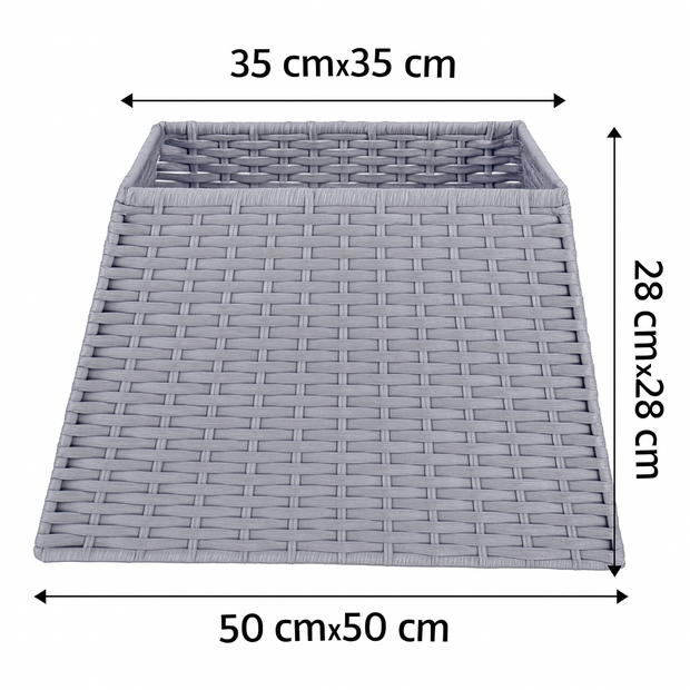 • Dimensions: Top 35×35 cm, Base 50×50 cm, Height 28 cm