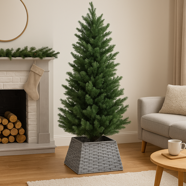 Finish your festive display with this Floralcraft® grey square Christmas tree skirt, a stylish wicker-style collar designed to cover unsightly tree stands and pots. With 35×35 cm top, 50×50 cm base and 28 cm height, it provides a smart, modern alternative to round tree skirts.