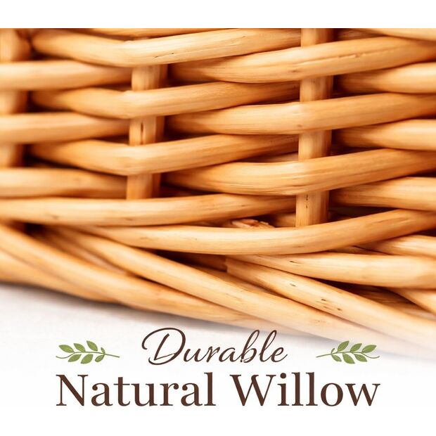 With its compact footprint, this hamper basket is perfect for cramming with premium food items such as preserves, chocolates, jars, and small bottles, while retaining structure and elegance. The natural willow finish gives it a warm, rustic charm that works beautifully in both country and modern settings.