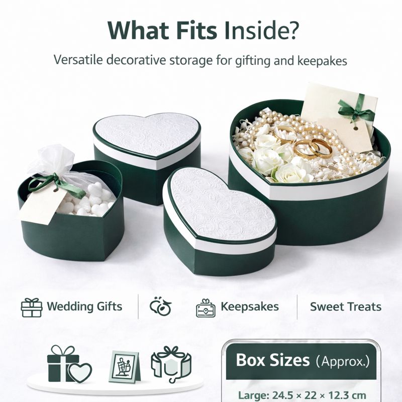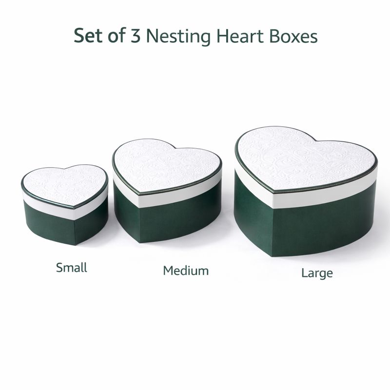 - Set of 3 Heart-Shaped Boxes – Coordinated nesting boxes in graduated sizes
