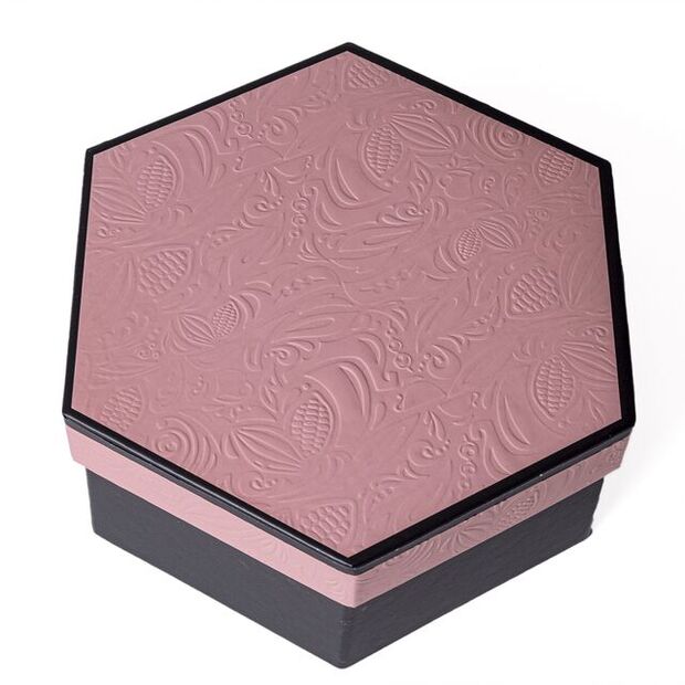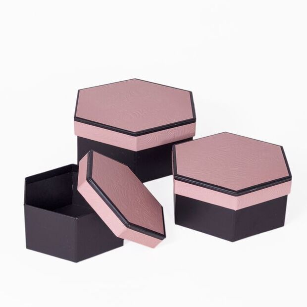 - Elegant Design: Black hexagonal boxes with a stylish pink lid featuring an embossed pattern.