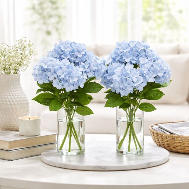 Create soft, elegant displays with this realistic Floralcraft® pale blue hydrangea bush.