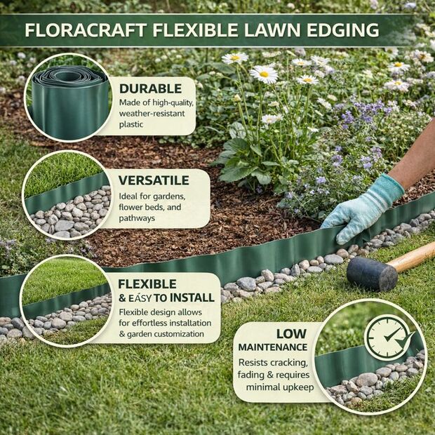 Floralcraft® Plastic Lawn Edging provides a simple, effective way to define and organise
