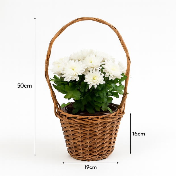The Floralcraft® Golden Willow Pot Mum Basket is a classic trade-quality wicker basket,