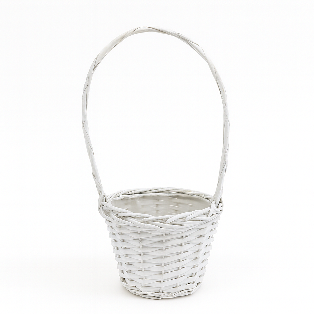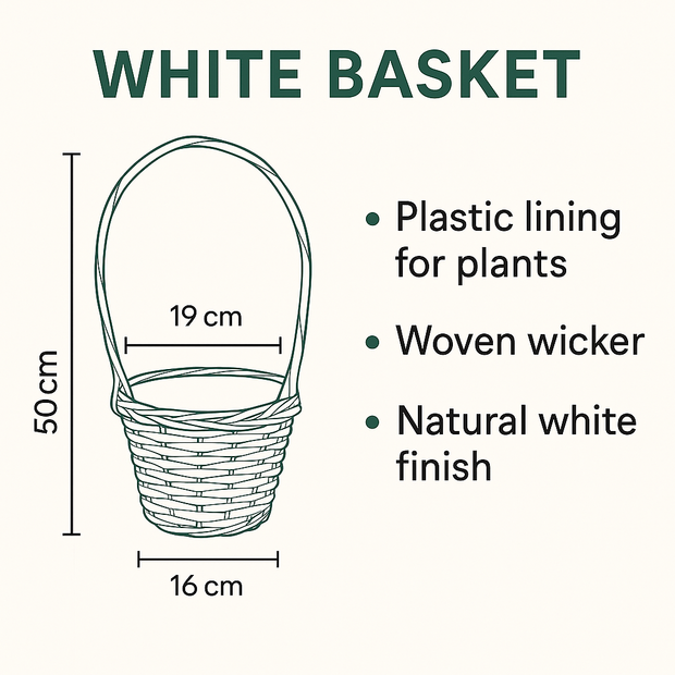 Keywords: white willow basket, pot mum basket, lined wicker basket, florist basket with handle,