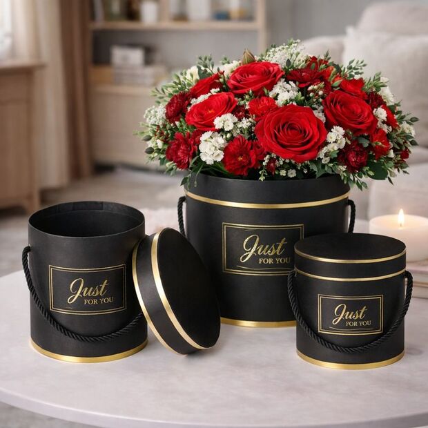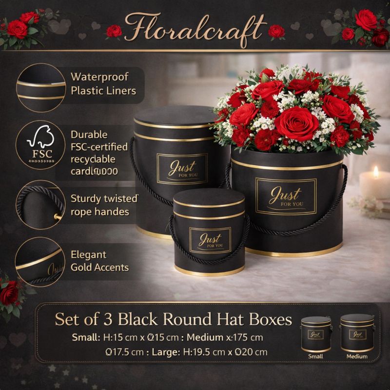 This luxury set of three round hat boxes is ideal for floristry, gifting, weddings, events, and modern home décor.