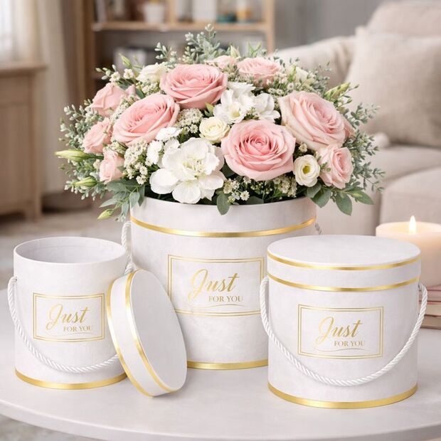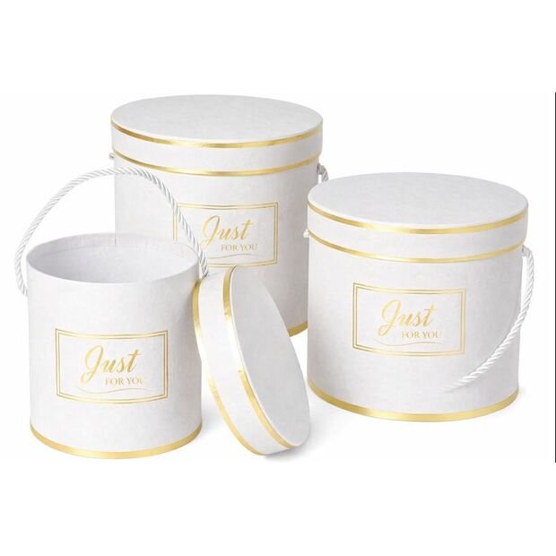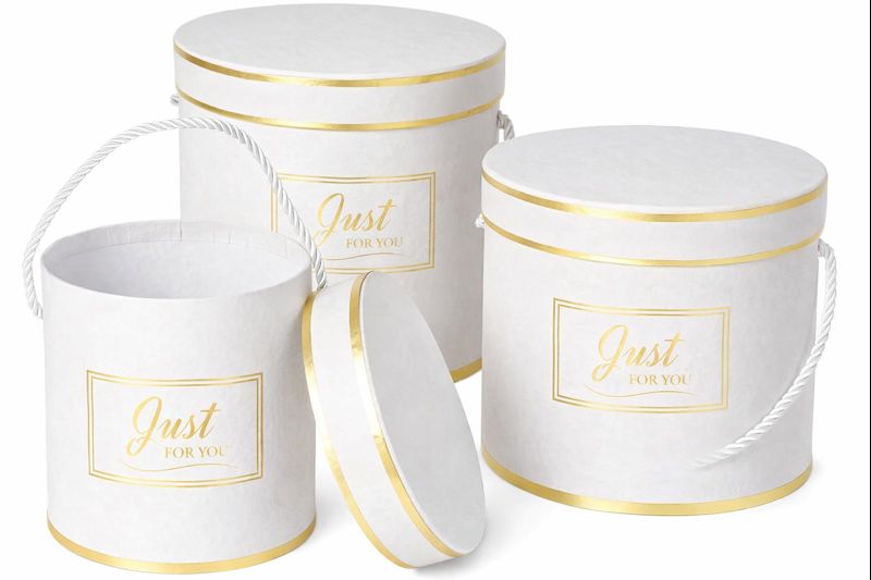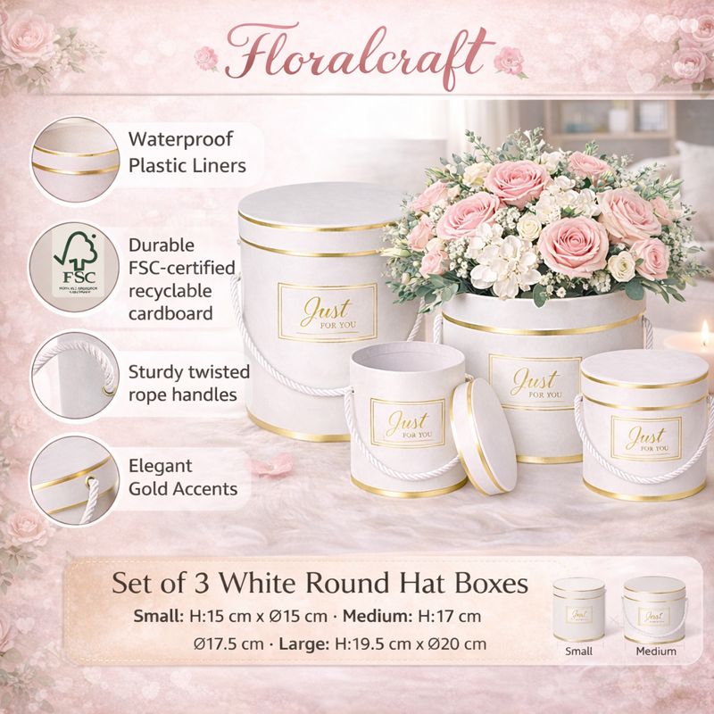 This luxury set of three round hat boxes is ideal for floristry, gifting, weddings, events, and refined home décor.