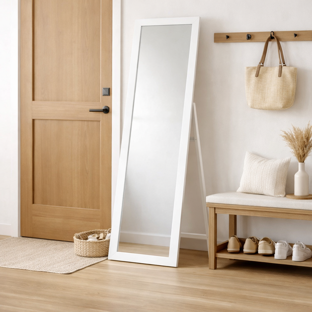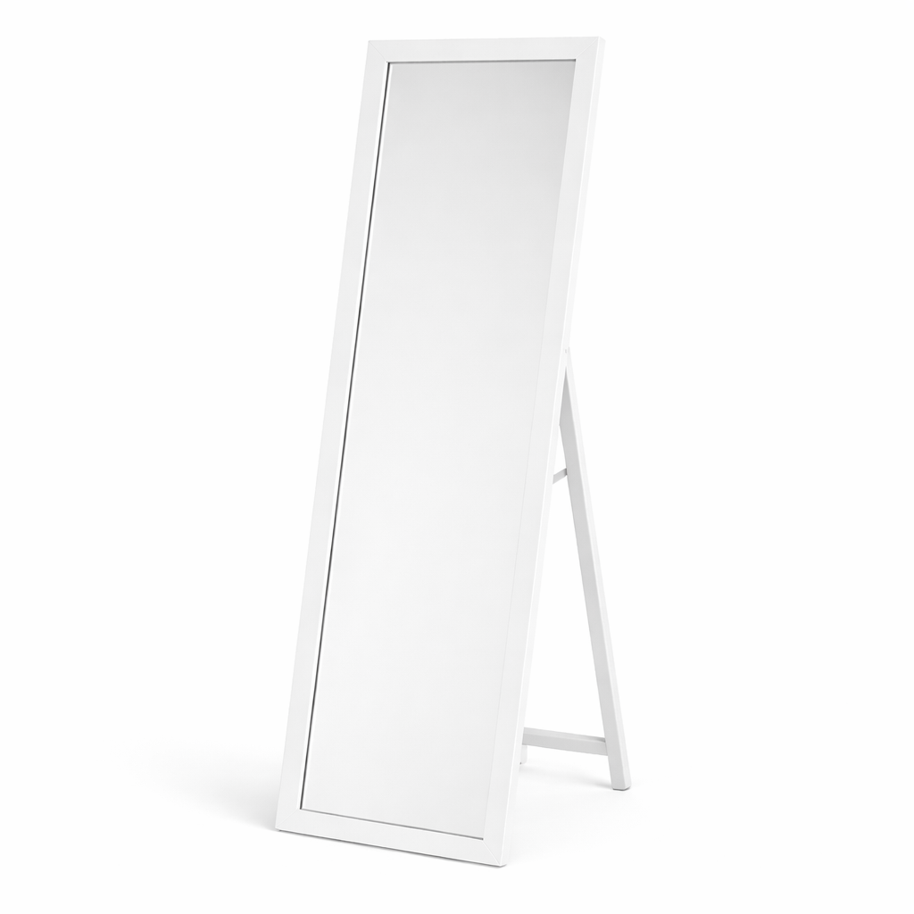 The Floralcraft® Miranda Floor Standing Mirror is a modern and stylish addition to any room. With its smart angular frame and crisp white finish, this cheval mirror seamlessly blends into your decor. The mirror is designed to tilt, allowing you to view yourself fully without needing to stand too far away. It’s perfect for smaller spaces, and its freestanding design makes it easy to move. Delivered fully assembled, so you can start using it right away.