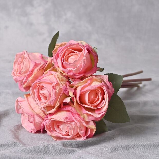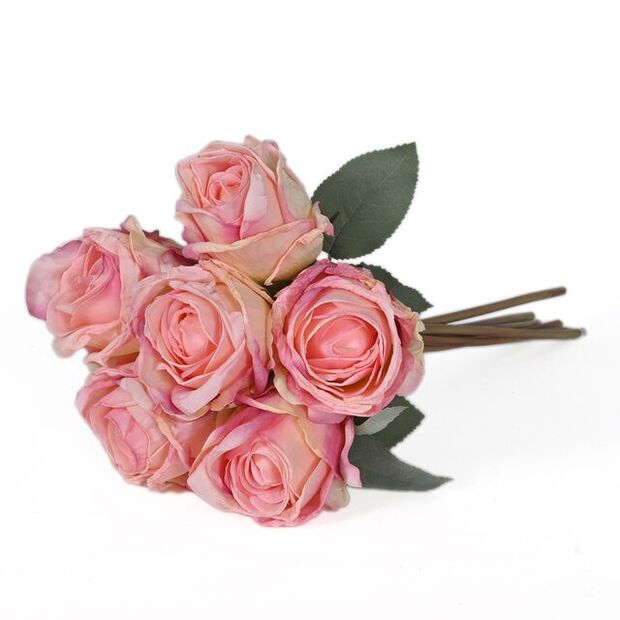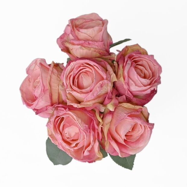 Add a charming touch to your floral creations with the FLORALCRAFT® Sereena Rose Bunch in Pink. Featuring six realistic old English antique-style roses complemented by lush leaves, this beautiful bunch is perfect for wedding bouquets or as focal flowers in any arrangement.