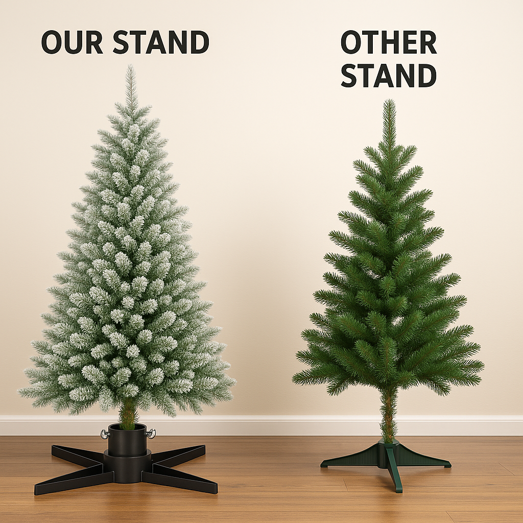 Add a festive and functional base to your real Christmas tree with the Floralcraft® Star Christmas Tree Stand (Black). This stylish, black, star-shaped stand doesn’t just hold your tree—it helps maintain it. Designed to accommodate tree trunk diameters from 4 cm to 9 cm, it suits a wide range of tree sizes, up to approximately 9 ft tall.
