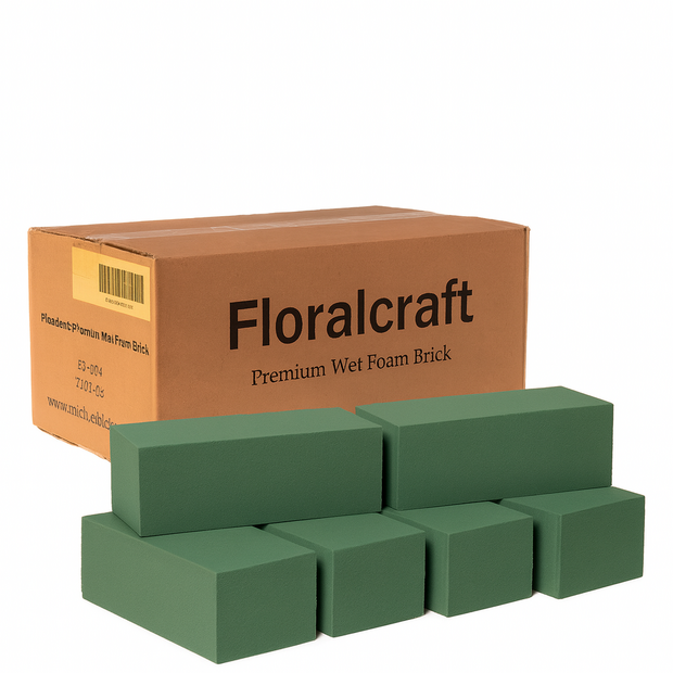 Bulk trade pack of 20 Floralcraft® wet floral foam bricks (23 × 11 × 8 cm). Fast absorption, firm stem grip, trusted by professional florists for weddings, tributes and everyday arrangements.