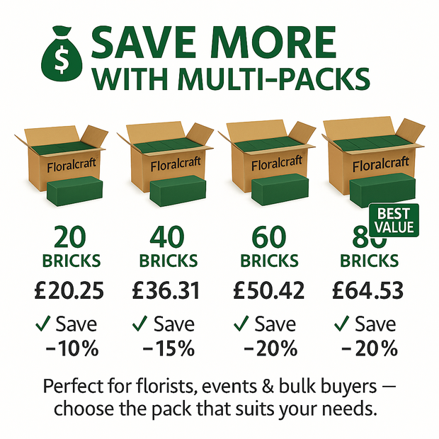 • Pack of 20 bricks — trade-friendly carton ideal for busy florist shops and events.