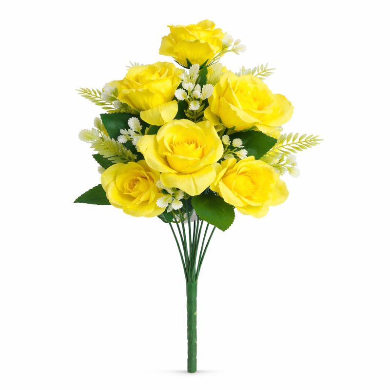 Add lasting colour and structure to your floral displays with these Floralcraft® Yellow Artificial Rose Bushes. Designed for professional and home use, each bush stands approximately 40cm tall and features 18 layered rose heads with complementary filler foliage for a full, natural appearance.