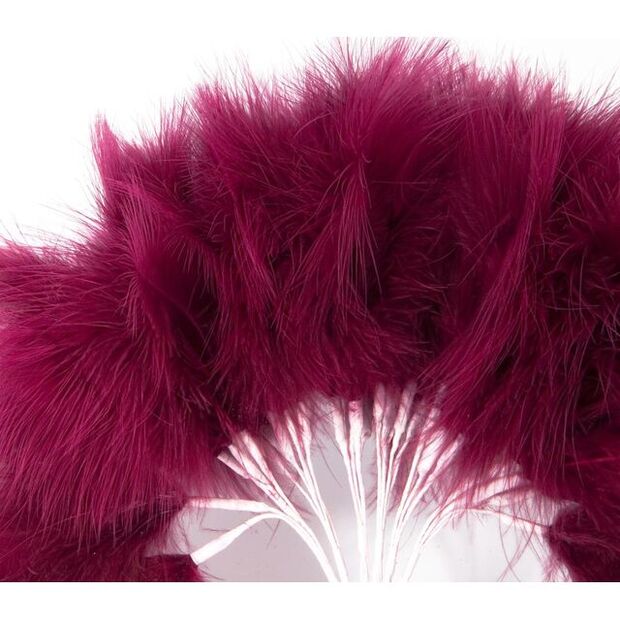 A pack of 6 stems of fluff feathers on a paper covered wire. Each stem has 3 feathers. A firm favourite with florists, they are perfect for bridal presentations, bouquets and decorative or fun pieces. Wide variety of vibrant and pastel colours available to choose from or mix and match.