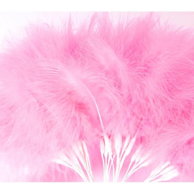 A pack of 6 stems of fluff feathers on a paper covered wire. Each stem has 3 feathers. A firm favourite with florists, they are perfect for bridal presentations, bouquets and decorative or fun pieces. Wide variety of vibrant and pastel colours available to choose from or mix and match.
