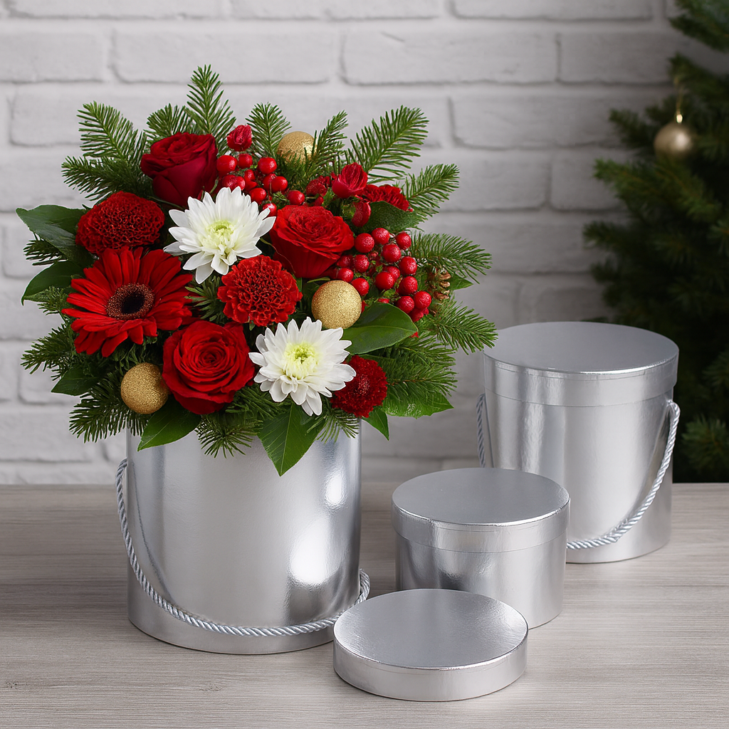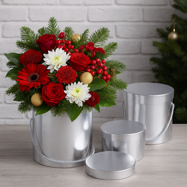 OASIS® Hamilton Hat Boxes (Set of 3 – Silver) offer a refined, metallic look with strong functional design. These nesting hat boxes are ideal for florists and gift creators wanting to combine elegance with practicality.