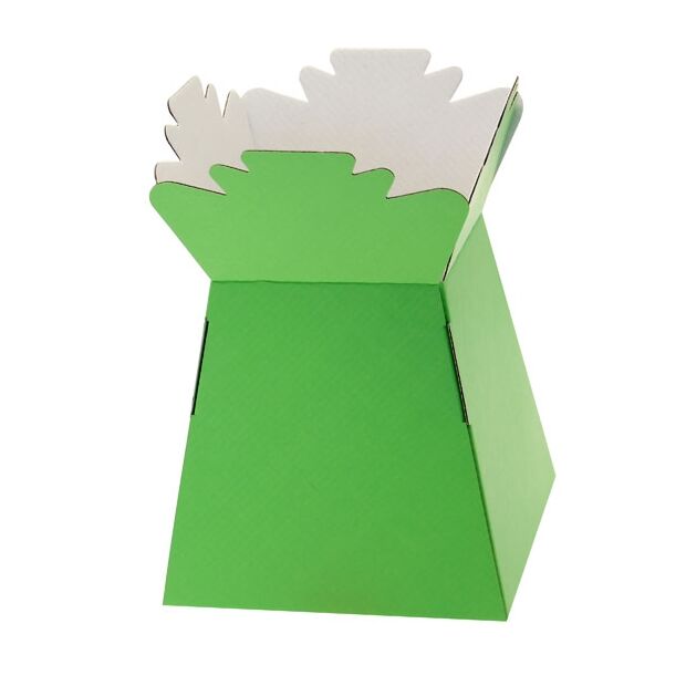 Floralcraft Hand Tied Vase x30 - Lime Green is a professional-grade presentation box for hand-tied bouquets. Supplied flat-packed in a pack of 30, each box features a pearlised glossy finish and sturdy base for aqua-packed arrangements.